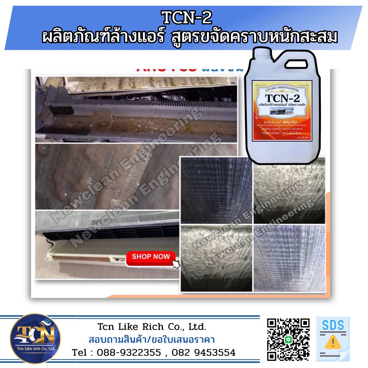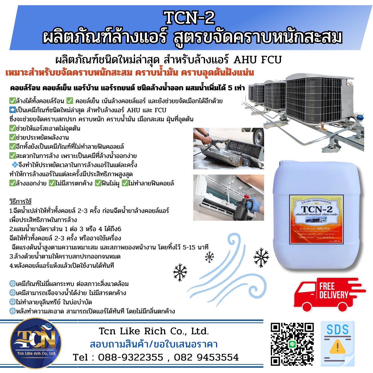 Tcn Like rich Co., LTD. จำหน่ายน้ำยาล้างคอยล์แอร์และเคมีภัณฑ์ทำความสะอาดสุขภัณฑ์ และดูค่าน้ำในระบบ Cooling Tower Chiller