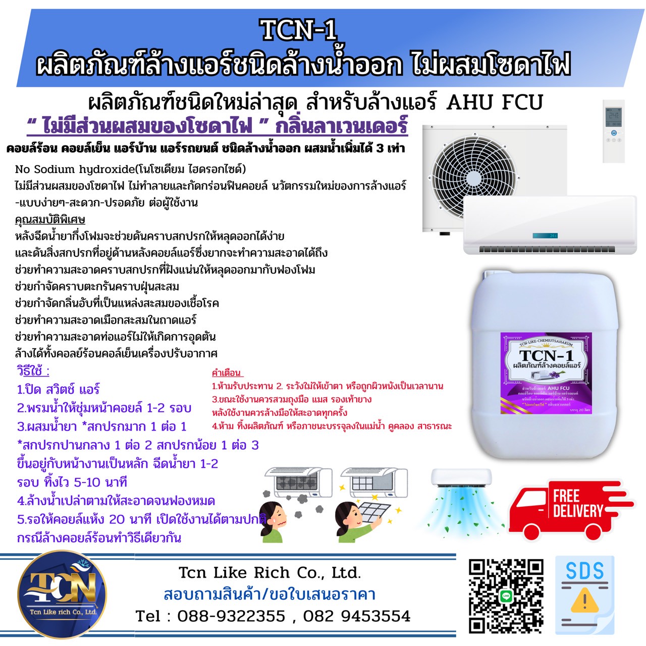 - ล้างออกง่าย โดยไม่มีสารตกค้าง ฟินไม่ผุ ไม่ทำลายฟินคอล์ย