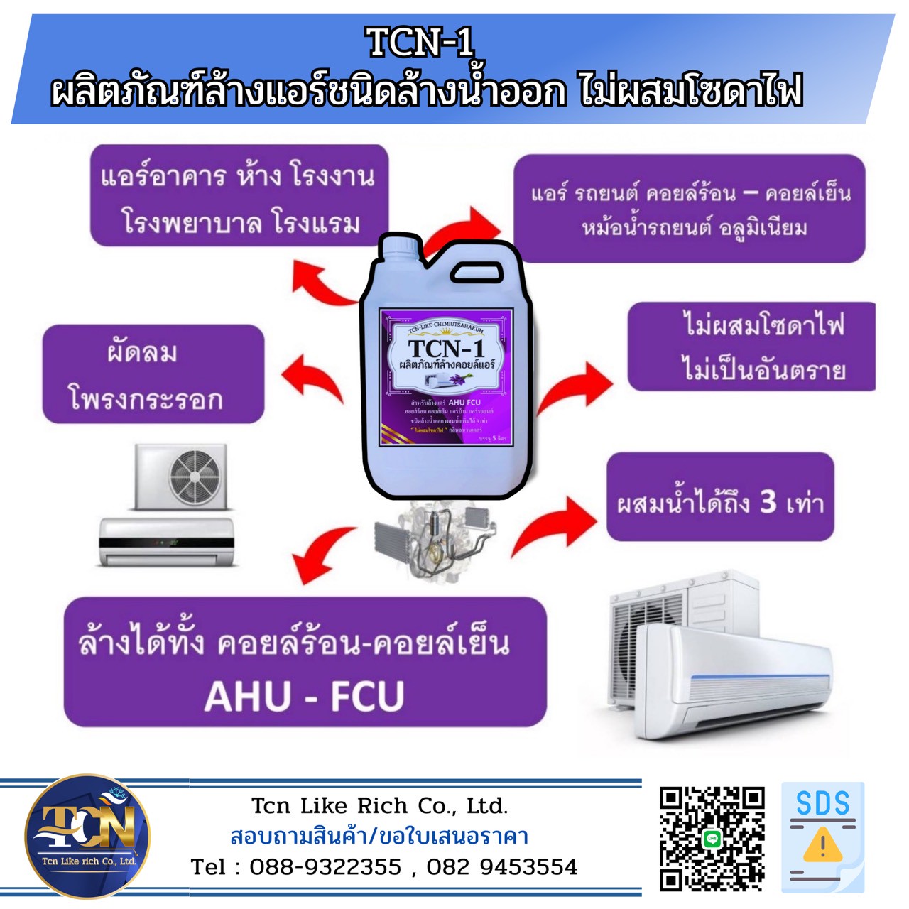 Tcn Like rich Co., LTD. จำหน่ายน้ำยาล้างคอยล์แอร์และเคมีภัณฑ์ทำความสะอาดสุขภัณฑ์ และดูค่าน้ำในระบบ Cooling Tower Chiller