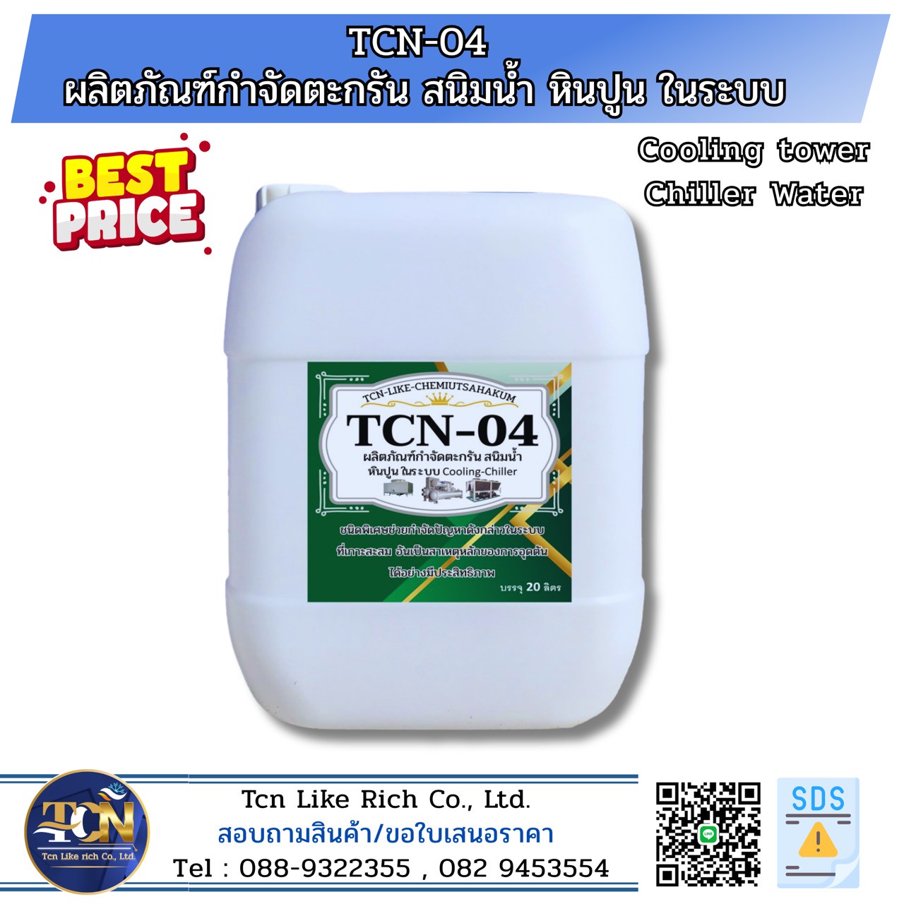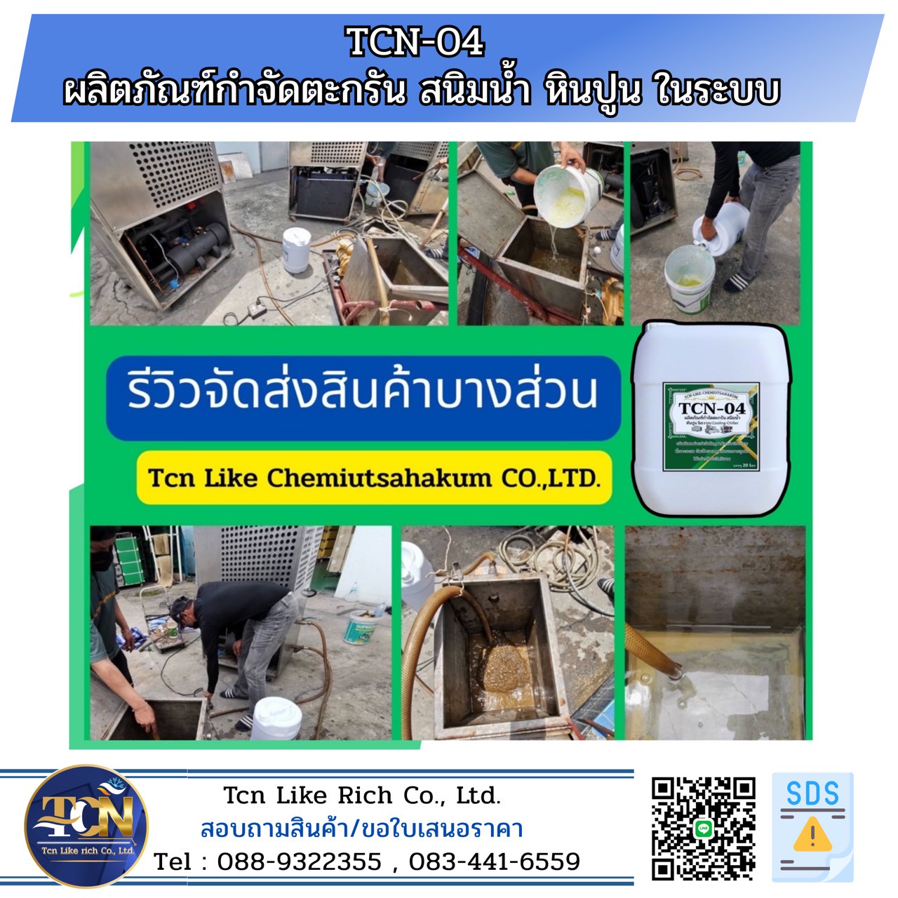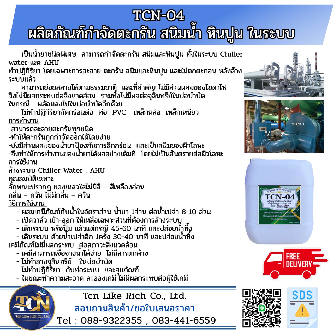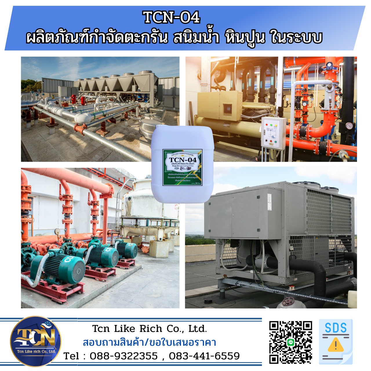 Tcn Like rich Co., LTD. จำหน่ายน้ำยาล้างคอยล์แอร์และเคมีภัณฑ์ทำความสะอาดสุขภัณฑ์ และดูค่าน้ำในระบบ Cooling Tower Chiller